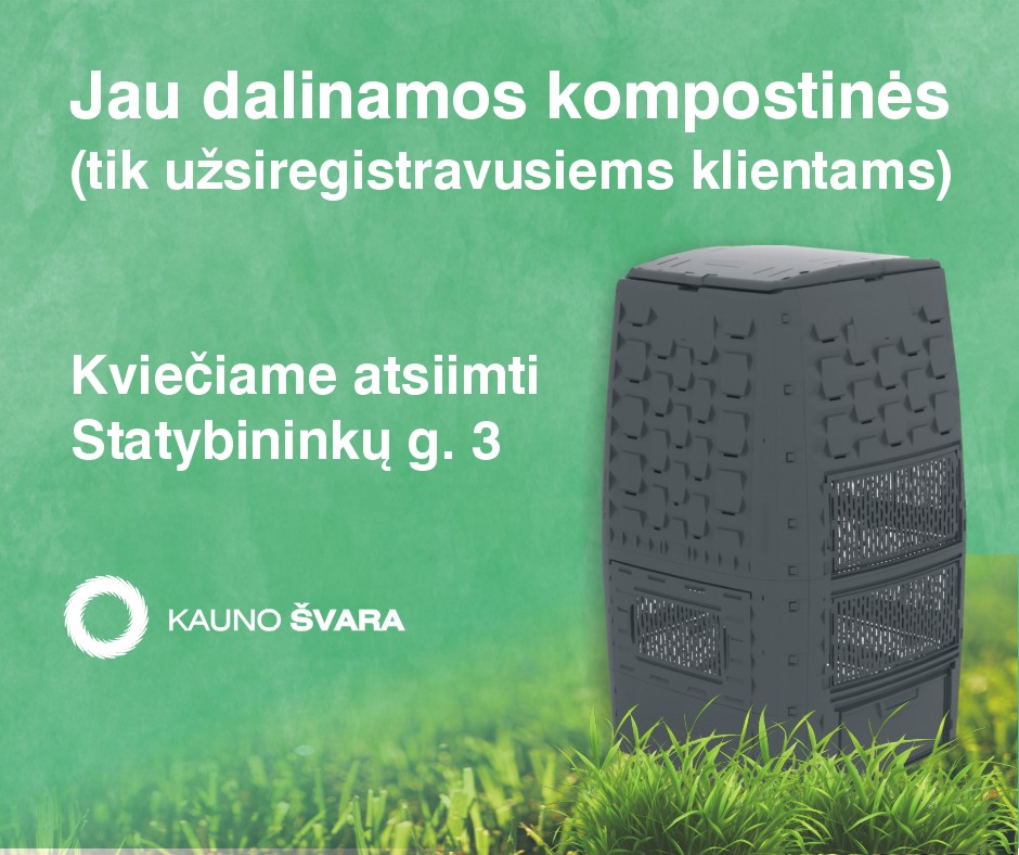 „Kviečiame kauniečius aktyviai registruotis ir atsiimti nemokamas kompostines. Tai naudinga dvigubai – gamtai ir pačiam gyventojui. Atliekos grįžta į gamtos ciklą, kieme užaugę augalai gauna natūralių maisto medžiagų“, – tikina „Kauno švaros“ ekologė Aida Stiklienė.